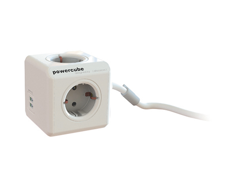 "PowerCube Extended forgrener fra Allocacoc er et smart tilbehør som øker antall stikkontakter for økt allsidighet hjemme eller på kontoret. Denne forgreneren gir deg mulighet til å gi strøm til flere enheter samtidig, takket være den smarte utformingen. Man har også muligheten til å koble til andre PowerCubes for å øke antall strømuttak tilgjengelig. Denne PowerCuben kobles rett til vegguttaket og gir da mulighet for å koble til fire strømadaptere, samt to enheter via USB-porter. Ved å koble til én USB-kabel vil porten levere 2,1A, mens ved to tilkoblede USB-kabler vil hver port levere 1A hver. Det følger også med et bordfeste slik at du enkelt kan feste den til under- eller oversiden av bordflaten med ved hjelp av to selvklebende puter. Allocacoc PowerCube Extended forgrener Forlenger stikkontakt og antall uttak 4 x CEE 7/4 strømuttak 1 x CEE 7/7 tilkobling 2 x USB 5V, 2,1A for lading av mobile enheter Lengde på tilkoblingskabel: 1,5 meter Praktisk bordfeste Barnesikrede kontakter Red Dot Award vinner 2014 Maks. belatsning: 3680W, 16A Farge: Hvit/grå Størrelse (BxHxD): 76 x 76 x 94 mm"