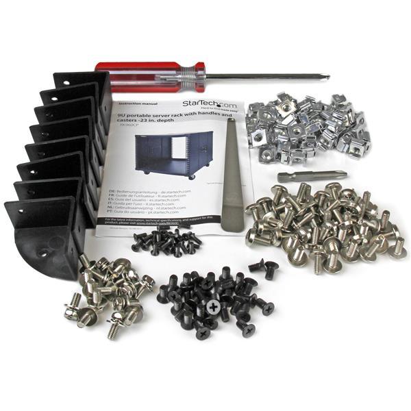 StarTech.com RK960CP. Modell/Type: Frittstående hylle, Rack-kapasitet: 9U, Maksimalvekt (kapasitet): 99,8 kg, Svinghjul. Vekt: 27,2 kg. Produktfarge: Sort