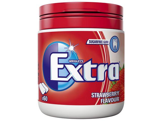 "Extra Strawberry er en sukkerfri tyggegummi med smak av jordbær som motvirker misfarging på tennene dine. Gir en forfriskende følelse i munnen etter og mellom måltider. Ekstra tyggegummi inneholder xylitol som stimulerer spytt Eske med 60 stk. Vekt: 84 gram"